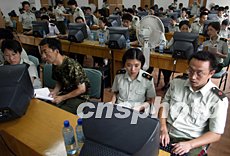 解放軍小湯山醫院的所有SARS康復患者將在20日出院。18日,院方緊急征調正在隔離區休整的年輕醫護人員冒著高溫酷暑向北京SARS數據庫輸入收治的六百多名患者資料。中新社記者:任晨鳴