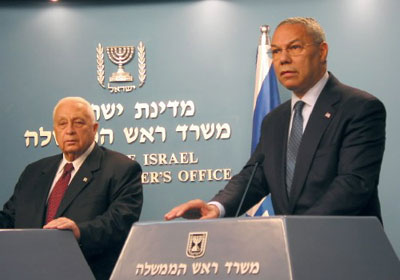 鮑威爾在會晤后與沙龍舉行的聯(lián)合記者招待會上表示,巴勒斯坦方面不能僅僅通過與巴激進組織達成停火協(xié)議來停止暴力活動,而應(yīng)該摧毀他們制造暴力的能力。鮑威爾還指責巴勒斯坦伊斯蘭抵抗運動(哈馬斯)是“和平的敵人”。