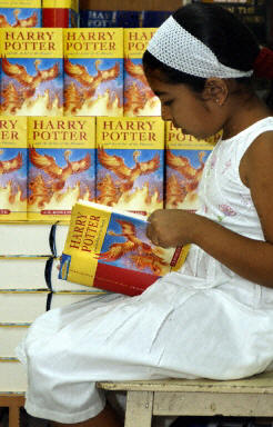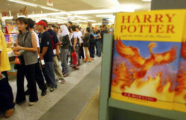 中新網(wǎng)6月21日電 在全球書迷的引頸期盼下,風(fēng)靡世界的暢銷兒童讀物《哈利·波特》系列第五集《哈利·波特和鳳凰的指令》,終于在格林尼治時(shí)間20日23時(shí)(北京時(shí)間21日上午7時(shí))全球同步發(fā)行。