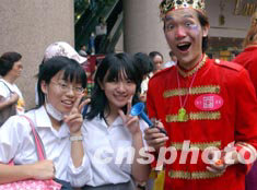 圖為學生與小丑一起歡慶香港疫區(qū)除名。