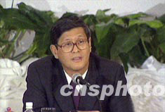 中國衛(wèi)生部和世界衛(wèi)生組織六月二十四日下午三時在北京舉行新聞發(fā)布會,世界衛(wèi)生組織西亞太區(qū)主任尾身茂宣布:解除北京受“沙斯”病毒影響的旅游警告。中新社 圖
