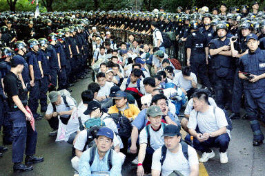 目擊者說,大約5400名鎮暴警員沖入漢城中部的延世大學,當時約有1500名鐵路工人在這所大學靜坐罷工。
