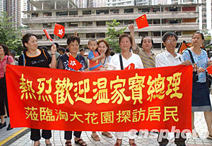 六月三十日,國務院總理溫家寶訪問香港社區淘大花園。淘大花園曾為SARS重災區。中新社記者 潘索菲 攝