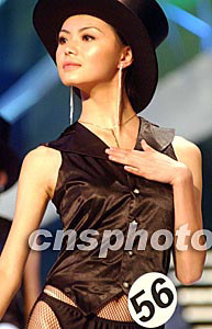 日前,在廣州舉行的“納愛斯雕牌2003超模大賽總決賽”上,選自中國各地的56名模特選手,身穿各款時裝一展風采。中新社記者 錢興強 攝