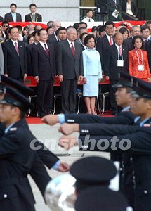 中新社香港七月一日電題∶溫家寶出席香港回歸祖國六周年升旗儀式