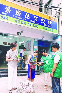 為了更好地辦好市府的這件實事工程,該區(qū)由3家國有和集體企業(yè)及2個自然人參股,組成了多元化投資的黃浦區(qū)浦景廢舊物資回收公司。據(jù)總經(jīng)理馬虎平介紹,新開辦的廢品交投站以全新的經(jīng)營機制和管理模式運作,把廢品收購做成“小超市”,并實行“三級網(wǎng)絡”管理。以老西門、半淞園街道為例,每個里委建立一個收購點,每個街道開設一家交投站,全市有統(tǒng)一的分揀場。目前兩街道共有66個廢品回收點,平均每個小區(qū)就有2個回收點,受益居民達9萬戶,居民在家門口就能方便地交投廢舊物品了。