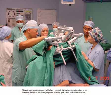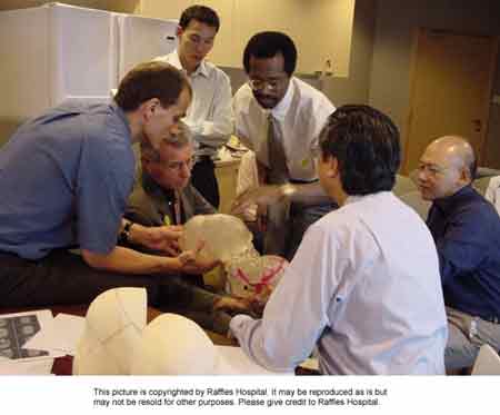 7月2日,新加坡主刀醫生在手術室演練手術的情景