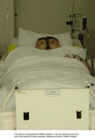 新加坡萊佛士醫院新聞發布室7月6日消息,這是伊朗連體姐妹5日接受檢查后,在醫院特護室里休息的情景。此時距離手術不過數小時的時間。(聞新芳)