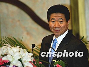 韓國總統盧武鉉八日在北京釣魚臺出席中韓經濟界人士歡迎總統訪華午宴,中國貿促會會長萬季飛(右一)表示感謝并致歡迎辭。中新社記者:鄭萍萍