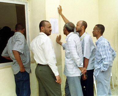 蘇丹航空公司的一架波音737客機8日凌晨4時(當地時間)在蘇丹港機場附近墜毀,除一名兩歲兒童幸存外,機上其余105名乘客和11名機組人員喪生。圖為遇難航班旅客的親屬在蘇丹航空公司查看遇難者名單。