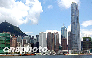 香港頂級TWO IFC國際金融中心近日落成,七月十日在港舉行新聞發布會,該建筑高420米,共88層,為香港最高建筑物,亦膺全球第三高的摩天大廈。中新社記者 錢興強 攝