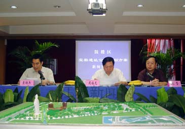 據悉,作為鄭和下西洋起始點的位于南京鼓樓區河西龍江地區的寶船廠遺址,是全球僅存的未經挖掘的600年前造船工業的文化遺產。南京市鼓樓區委、區政府為紀念鄭和下西洋600周年,弘揚中華航海科學文化,決定結合文物保護和現代開發,保護性地建設寶船遺址公園。會上,鼓樓區政府副區長袁嗣兵詳細介紹了寶船遺址公園的規劃布局、景點立意、籌建情況及內容方案等,并通過遺址公園的規劃模型,讓人們感受了600年前的歷史空間格局。一尊鄭和塑像、三泓碧灣清水,布列岸邊的油麻地、蓬廠作坊、巨錨廣場等造船設施,將全面打造出一座以寶船遺址為核心的鄭和文化體驗式公園。