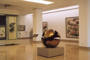 首先,美術館的硬件現(xiàn)代化達到了中國一流水準。裝修大量采用石質料材,楊館長說:“石材代表永恒,美術館此次莊重而樸素,簡潔而高雅的裝修,被美術界、建筑界公認已與國際接軌。”