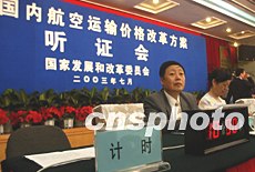 廣受關注的中國民航價格聽證會七月十五日在北京舉行,來自各地的消費者、經營者及有關方面代表將對民航運價改革工作小組起草的《民航國內航空運輸價格改革方案》進行公開論證。大會專門安裝記時器,保障每位代表發言機會均等。中新社記者 武仲林 攝