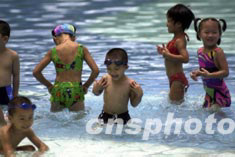 深圳連日持續高溫,局部氣溫高達攝氏三十七度,氣象臺向市民發出高溫警告,提醒民眾防暑降溫。圖為小朋友們在游泳池里避暑。作者:陳文
