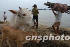 七月中旬的淮河洪水迫使安徽省穎上縣多處行洪區(qū)緊急破堤行洪,許多百姓被困在滔滔洪水中的高臺(tái)地帶,救濟(jì)成為當(dāng)務(wù)之急。圖為洪水圍困邱家湖行洪區(qū)堤上的農(nóng)民。中新社記者:賈國(guó)榮
