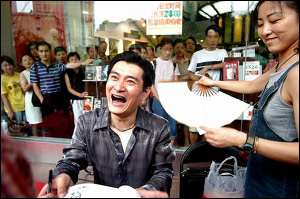 一本《誰搞垮了演藝事業》引爆了整個娛樂圈,昨天“罪魁禍首”黃安卻安然地來到南京書城為此書作簽售。下午2點半,黃安準時出現在書城門口,他的成名曲《新鴛鴦蝴蝶夢》也即時響起。聞訊而至的“黃迷”們把現場圍了個水泄不通,而主持人出身的黃安更是把氣氛調節得火爆異常。雖然現身僅短短的10幾分鐘,但黃安卻向記者們又抖出了許多猛料。