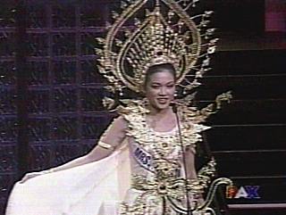 來自全球39位佳麗齊聚美國拉斯維加斯,為爭取2003年世界小姐的桂冠寶使出混身解數(shù)。來自泰國的蘇珊娜在機(jī)智問答中,以沉著穩(wěn)重的氣度舒展大將之風(fēng),她被問到的題目是為什么希望成為世界小姐,她回答:“因?yàn)槲抑来魃狭嘶使诰透队栉沂嬲宫F(xiàn)代女子的能力,無論在泰國、美國、或任何地方,展示出我們高貴有教養(yǎng),有能力,并展示我們很愛家人有高道德!