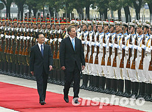 中國國務院總理溫家寶21日在北京舉行儀式,歡迎英國首相布萊爾訪華。中新社記者:滿會喬