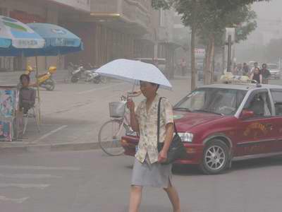 中新網7月21日電 據中廣網報道,今天清晨開始,寧夏回族自治區由中部向北部出現了明顯的揚沙浮塵天氣,早晨9時最嚴重時,首府銀川天色昏暗,能見度低,空氣中一味嗆人的土腥味,街頭行人不少婦女撐傘擋塵,一些人還不顧炎熱戴上了口罩。