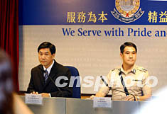 香港警務處刑事及保安處處長周富祥[左]及行動處處長鄧竟成,7月22日會見新聞界,回顧香港今年上半年的罪案情況及警方工作內容。作者:洪少葵