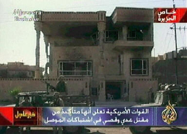 中新網7月23日電 美軍上將桑切斯7月22日晚在巴格達舉行的新聞發布會上證實,烏代和庫賽已在美軍當天突襲伊拉克北部城市摩蘇爾一座別墅的軍事行動中被打死。圖為半島電視臺畫面顯示美軍突襲該別墅的情景。(春風)