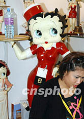 香港家庭用品、禮品及贈品綜合展,七月二十三日在香港會展中心開幕,圖為展會上端托盤的卡通人別具特色。中新社記者:錢興強