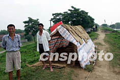 圖:村民堅守淮河大堤迎接第三次洪峰到來
