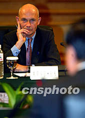 出席七月中國(guó)大連第五屆亞歐經(jīng)濟(jì)部長(zhǎng)會(huì)議的歐盟委員會(huì)貿(mào)易委員拉米,與中國(guó)商務(wù)部部長(zhǎng)呂福源就世界貿(mào)易組織新一輪多邊貿(mào)易談判的有關(guān)議題深入交換了意見(jiàn)。 中新社記者:鄭萍萍