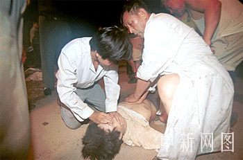 組圖:醫務人員搶救辛集爆炸煙花廠遇難者