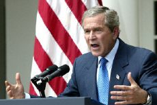 有記者問美國是否已經(jīng)快要抓獲或殺死薩達姆?布什說:“我不清楚是否很快了,肯定比昨天更接近了。我們還在追捕中。”他稱,薩達姆兩個兒子的死亡強化了一個現(xiàn)實--薩達姆政權(quán)已經(jīng)不復(fù)存在了。