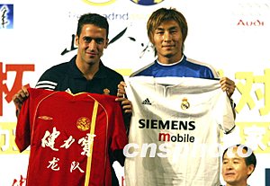 皇馬主教練奎羅斯表示皇馬一定會(huì)讓中國(guó)球迷看到一場(chǎng)高質(zhì)量的比賽。皇馬隊(duì)長(zhǎng)勞爾則表示,“非常高興來到中國(guó)的首都北京。在昆明集訓(xùn)期間,熱情的昆明球迷讓皇馬球員很是感動(dòng)。皇馬球員都表示,將在明晚讓中國(guó)球迷欣賞到皇馬真正的足球。”