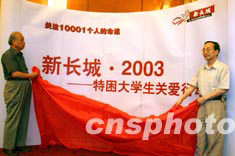 八月三日,由中國扶貧基金會(huì)主辦的“新長城2003特困大學(xué)生關(guān)愛行動(dòng)”在北京人民大會(huì)堂舉行啟動(dòng)儀式,此次行動(dòng)將有一萬余名特困大學(xué)生得到捐助。中新社記者:盛佳鵬