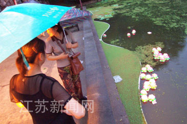 2003年8月3日晚至4日凌晨,南京莫愁湖公園推出“迎七夕莫愁湖放燈游園晚會”,數千游客冒雨與會。細雨中,對對情侶相依相偎,更添溫馨。