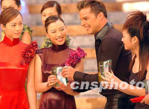 國際巨星瑞奇.馬汀,三日晚為2003年度香港小姐競選準決賽獲獎的香港小姐頒獎。 中新社記者:錢興強