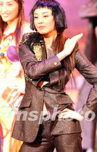 香港歌手鄭希怡,日前在2003年度香港小姐競選準決賽上歌舞表演。中新社記者:錢興強