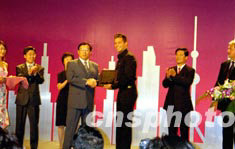 享有“拉丁王子”美稱的國(guó)際巨星瑞奇·馬丁(右三)四日成為“上海友好大使”,并獲得上海贈(zèng)送的“上海城市金鑰匙”。瑞奇·馬丁是“國(guó)際名人上海行”的第一位嘉賓。作者:劉殊瑾