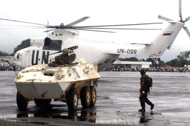 在瓢潑的大雨中,大約300名尼日利亞士兵乘坐兩架聯合國的直升機出現在離首都蒙羅維亞45公里的羅伯茨菲爾德機場。他們手握沖鋒槍,確保機場安全。