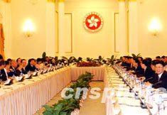 中新網8月5日電 粵港聯席會議今早在香港禮賓府召開新一次會議,香港代表團由行政長官董建華率領,粵方代表團團長則由廣東省長黃華華擔任。本次會議是“內地與香港關于建立更緊密經貿關系的安排”簽署后舉行的首次粵港合作聯席會議。