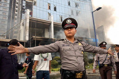 萬豪大酒店附近有數(shù)家外國駐印尼大使館。目前,酒店大樓濃煙不斷,警方和消防人員已趕到出事現(xiàn)場,正在維持治安和進(jìn)行滅火。