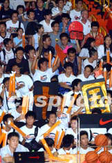 香港籃球愛好者和超級球迷,8月5日在香港修頓球場,熱烈歡迎中國國家籃球隊訓練,為一睹偶像姚明和巴特爾高聲吶喊。中新社記者:洪少葵