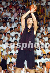 NBA超級巨星姚明,8月5日在香港修頓球場為香港青年籃球愛好者表演精湛投籃球技。