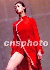 八月初正在北京苦練中央芭蕾舞團新版《大紅燈籠高高掛》的女主角朱妍,身著法國服裝設計大師布倫的新作,在足尖旗袍共舞中展示人體的美妙,充分表現東方悲劇命運的感情變化。中新社記者:賈國榮