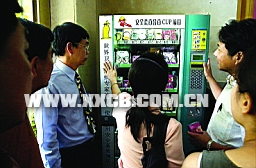被稱為“售貨機”的安全套自動銷售機,其實與食品自動銷售柜無異:透明的柜內(nèi)設有5層,除中間一層排放各種檔次不一的安全套外,其余4層則擺放著各類食品和香煙。顧客在購買安全套時具有隱蔽性,而且也很方便,既可以使用硬幣也可以使用紙幣,還能找零,顧客還能看見產(chǎn)品進行選購。