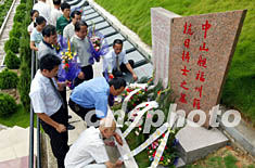 抗日戰爭勝利五十八周年之日,中山艦福州籍抗日將士之墓在福州三山陵園落成,八十八歲的中山艦幸存老兵邱奕殿與部分抗日將士家屬特地來到墓前,為遇難者獻上鮮花。1938年10月24日,在武漢保衛戰中,中山艦遭六架日軍飛機轟炸,不幸沉沒,艦長薩師俊等二十五名官兵血祭長江,其中有二十二位是福州籍官兵。作者:祝敏松