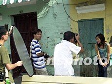 幾位香港青年在澳門(乙加水)仔老城區的古老建筑前拍攝照片,進入暑期以來,前來澳門旅游觀光的客人大增,其中不乏到澳門巡古懷舊的客人。中新社記者:李剛