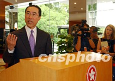 香港財政司長唐英年八月十八日公布失業率,五至七月失業率升至8.7%的空前高位。但是,唐英年認為,香港正逐步走出失業率的高峰,他對下一次公布的失業率持樂觀態度。中新社記者:潘索菲