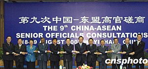 會議同意,中國-東盟第十次高官磋商于二00四年四月在柬埔寨首都金邊舉行。