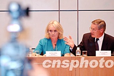 SARS專家委員會兩位聯合主席錢卓樂爵士【右】及葛菲雪教授,8月19日在香港召開記者會,總結在香港一星期的工作情況,并表示將于10月2日提交報告。作者:洪少葵