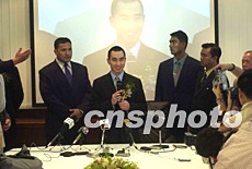 「新濠國際」董事總經理何猷龍在澳門區總部成立儀式上舉行記者會,回答媒體提問。中新社記者李剛